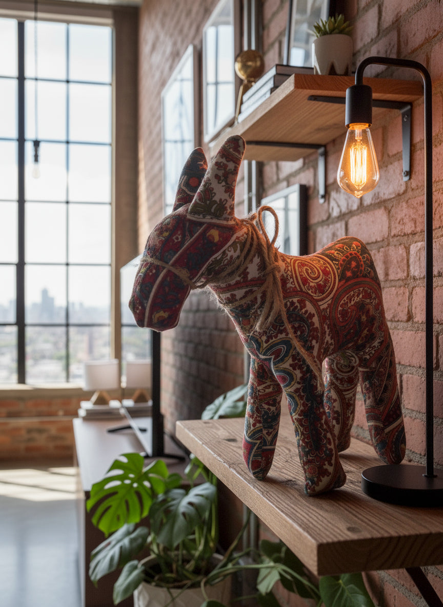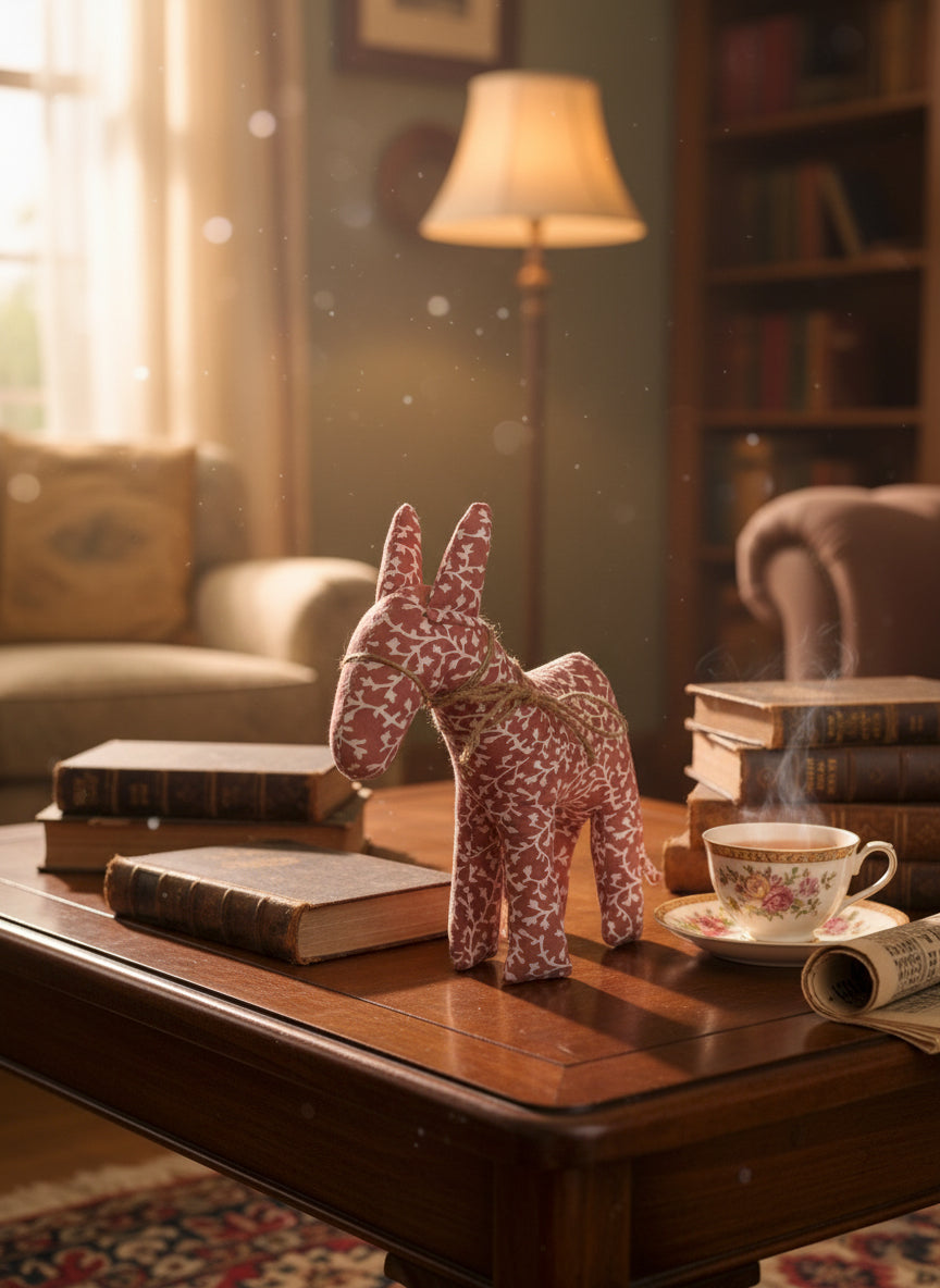 Asinello in stoffa di dimensioni medie, caratterizzato da uno stile pulito e lineare. Realizzato con un’unica stoffa, senza accessori decorativi, ha un aspetto semplice ma allo stesso tempo affascinante. Perfetto da esporre in casa come decorazione sobria, o da regalare a chi apprezza l’essenzialità.