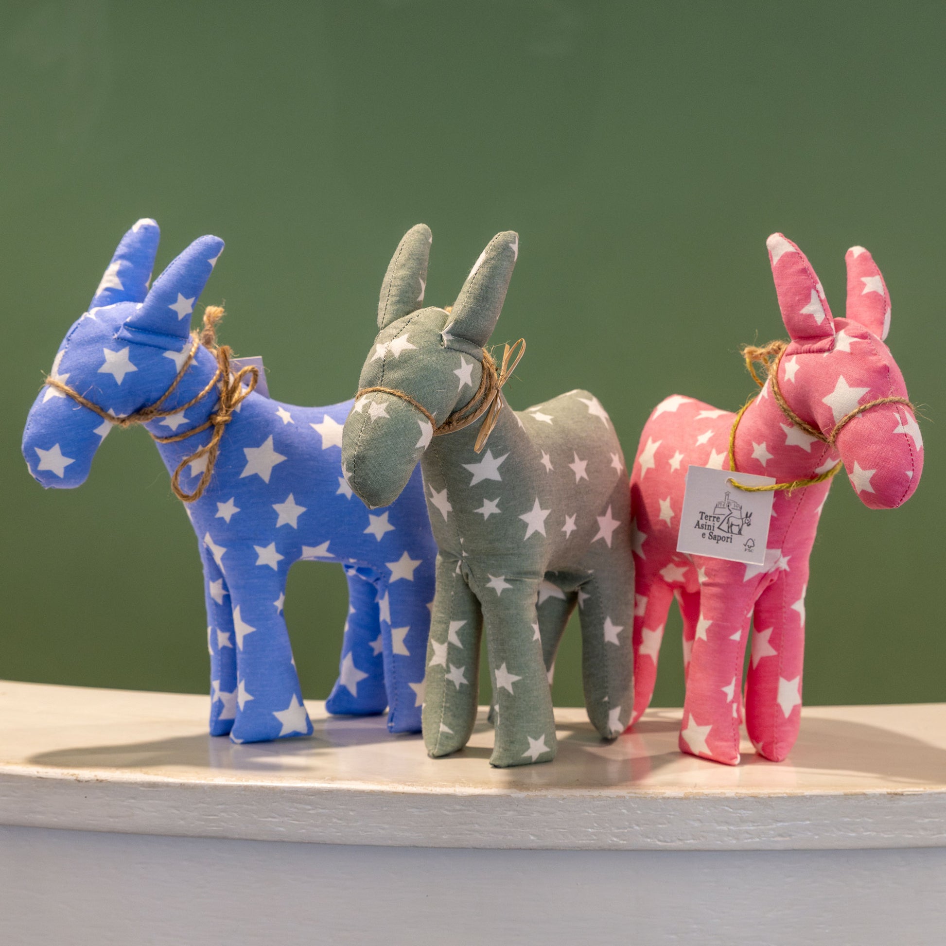 👉 Ogni asinello in stoffa è unico: contattaci prima dell’acquisto per scegliere la fantasia disponibile.